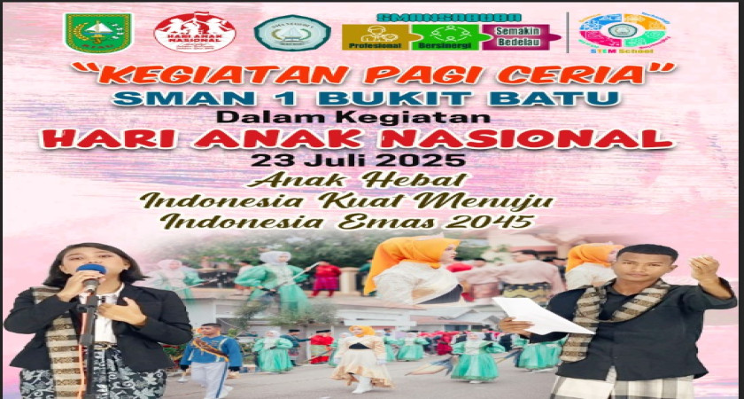 Dalam rangka memperingati Hari Anak Nasional, SMA Negeri 1 Bukit Batu menyelenggarakan kegiatan istimewa bertajuk Pertemuan Pagi Ceria yang diikuti oleh seluruh siswa, kepala sekolah, guru, dan tenaga kependidikan. Kegiatan ini menjadi momen penuh kebersamaan, keceriaan, dan semangat kebangsaan, serta dirancang untuk menumbuhkan rasa cinta tanah air, kekompakan, dan kepedulian terhadap sesama.