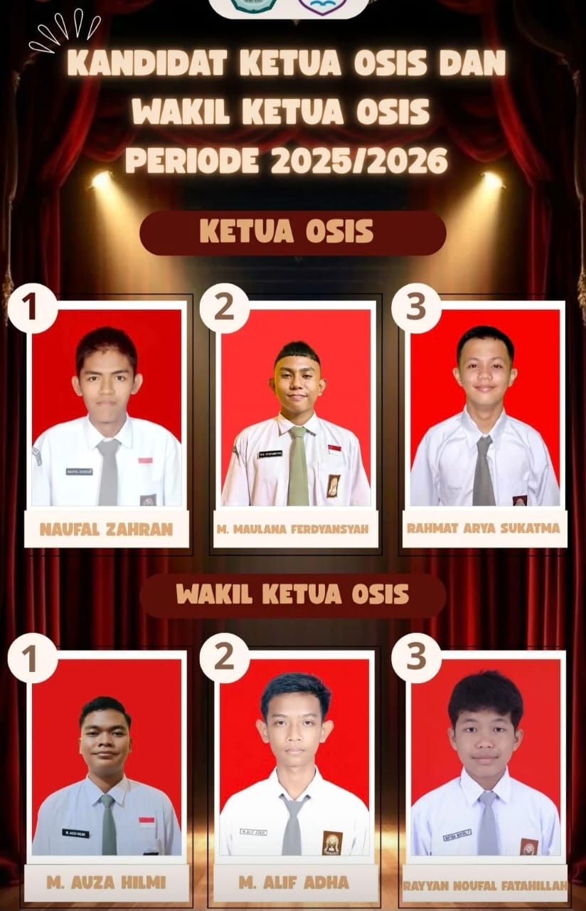 Melalui tahapan seleksi yang ketat, baik berupa penilaian rekam jejak, wawancara, maupun penyaringan administratif, akhirnya diperoleh tiga kandidat terbaik untuk posisi Ketua OSIS yaitu Naufal Zahran, M.Maulana Ferdyansyah dan Rahmat Arya Sukatma. Adapun tiga kandidat terbaik untuk posisi Wakil Ketua OSIS yaitu M. Auza Hilmi, M. Alif Adha dan Rayyan Noufal Fatahillah. Seluruh kandidat kemudian diberi kesempatan untuk menyampaikan visi, misi, serta program kerja mereka di hadapan siswa, guru, dan civitas sekolah.