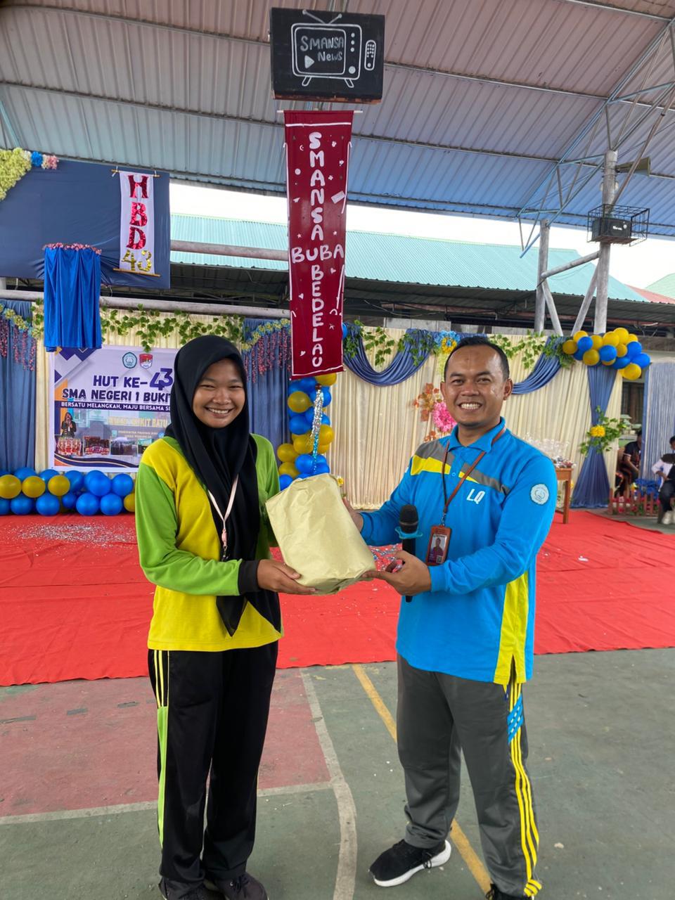 Kegiatan HUT ke-43 ini dapat terlaksana dengan lancar dan sukses berkat kerja sama yang luar biasa antara pihak sekolah, OSIS SMA Negeri 1 Bukit Batu, serta para donatur yang telah dengan tulus memberikan sebagian rezekinya untuk mendukung terselenggaranya kegiatan dan penyediaan hadiah jalan santai.