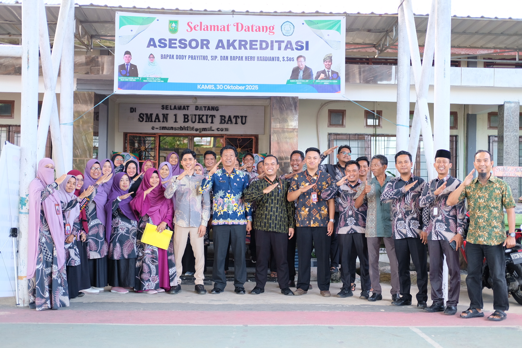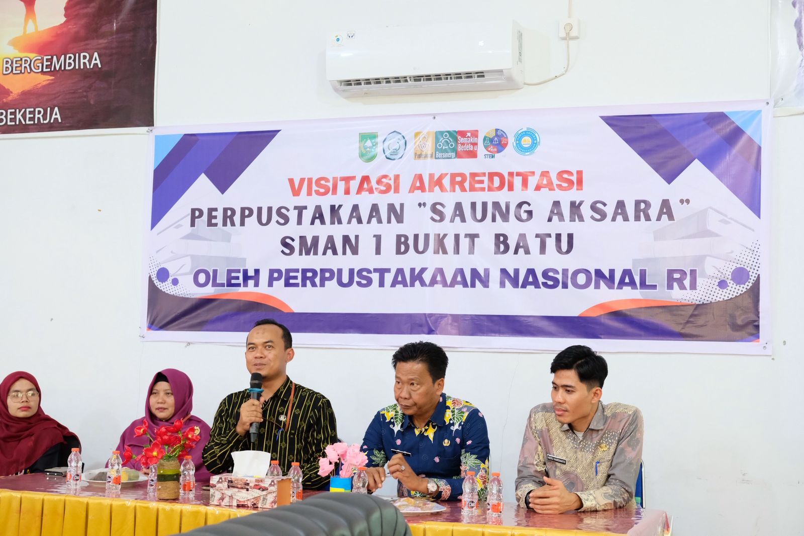 Hari Kamis tanggal 30 Oktober 2025 SMA Negeri 1 Bukit Batu sedang berlangsungnya kegiatan visitasi akreditasi Perpustakaan Saung Aksara oleh Tim Asesor Akreditasi dari Perpustakaan Nasional Republik Indonesia, yaitu Bapak Dody Prayitno, S.IP dan Bapak Heru Herdianto, S.Sos.